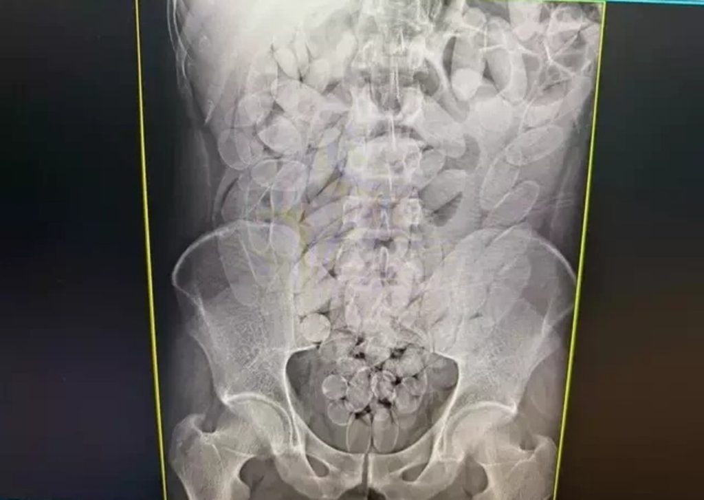 Os raios X mostraram que os oito haviam engolido cápsulas de pasta base de cocaína. A droga foi retirada de forma segura por equipe médica, totalizando 645 cápsulas, publicou o Dourados Informa. Após o procedimento, todos foram encaminhados à PF (Polícia Federal), onde permanecem à disposição da Justiça.