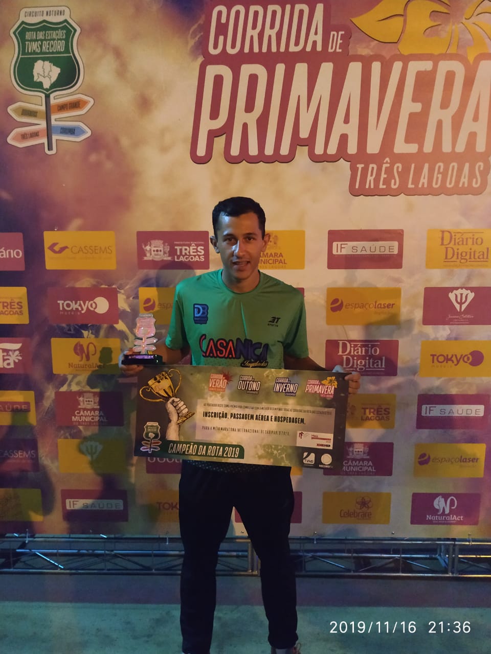 O jovem Erismar Ávila, também cansado da prova de Coronel Sapucaia, deu tudo o que podia nessa nova prova e o resultado não poderia ser diferente. Erismar largou muito bem, se manteve entre os 5 primeiros colocados, e mais na reta final, o Iguatemiense cresceu na prova, indo para o tudo ou nada, pois precisava chegar entre 3 primeiros. Com esse objetivo, na reta final, Erismar assumiu o 2° lugar, sendo o vice Campeão nos 5 km em Três Lagoas, mais um ótimo resultado conquistado por Erismar.