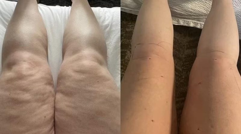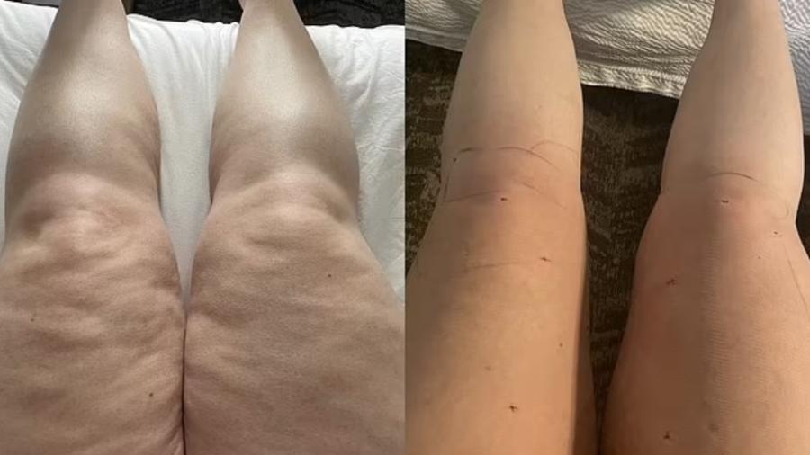 ‘[Minhas pernas] pareciam irregulares enquanto os nódulos se formavam. É como tumores se formando sob sua pele. Todos os lugares gordurosos pareciam assim’, disse ao site DailyMail.