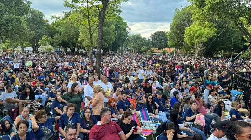 Milhares de fiéis do Brasil e do Paraguai lotam o Santuário Diocesano, no distrito de Vila São Pedro, em Dourados, no sul do Estado, para acompanhar a apresentação de Frei Gilson neste domingo. Considerado uma das figuras religiosas mais populares do país, o frei realiza um show gratuito como parte das comemorações dos 90 anos da Catedral Nossa Senhora da Conceição, padroeira do município.