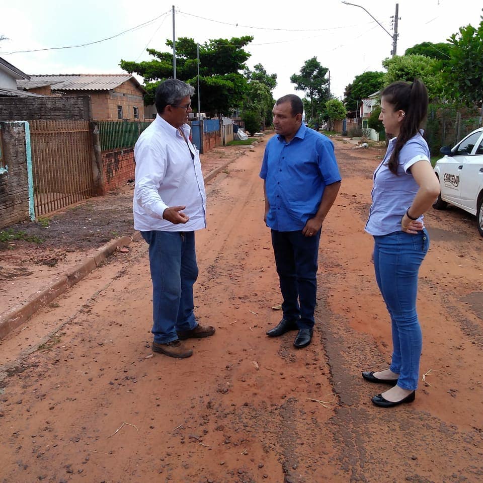 A pedido da prefeita Patrícia e dos vereadores, os responsáveis pelo trabalho de pavimentação e recuperação asfáltica do Consórcio Conisul, estiveram visitando o bairro que receberá as melhorias.