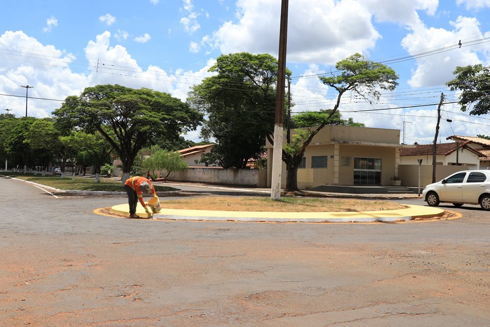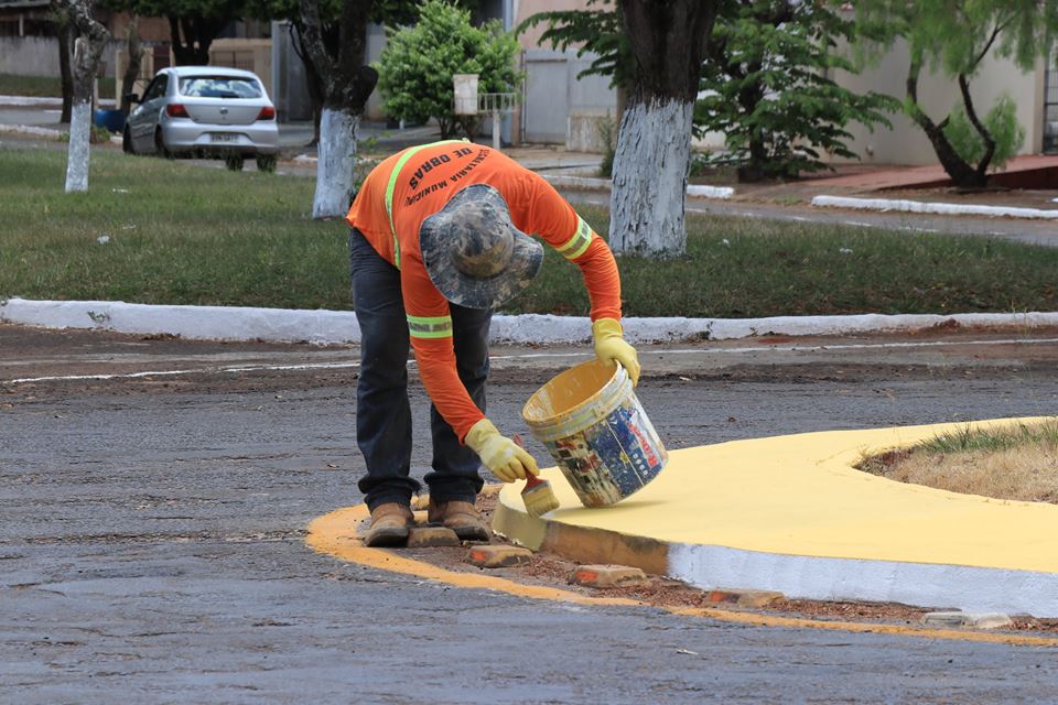 Iguatemi- Prefeitura intensifica trabalhos de pinturas de meios-fios e recuperação de rotatórias de ruas e avenidas