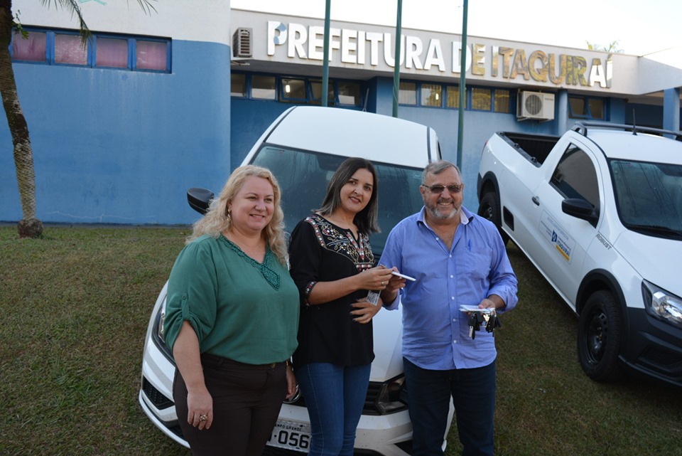 Foram repassados três veículos Voyage, um Saveiro, e uma Spin. O prefeito entregou as chaves de um Voyage para Márcia Ramos e Eliane Melquíades (representantes da Secretaria de Educação); de uma mini van de sete lugares Spin, para o secretário de Saúde, Marcelo Batista Rosa; de um Saveiro para o secretário de Obras, José Carlos Loro – Carlão; de um Saveiro para a secretária de Assistência Social, Virginia Messias Cardoso; e as chaves de outro Voyage para o secretário de Meio Ambiente, Luiz Carlos.