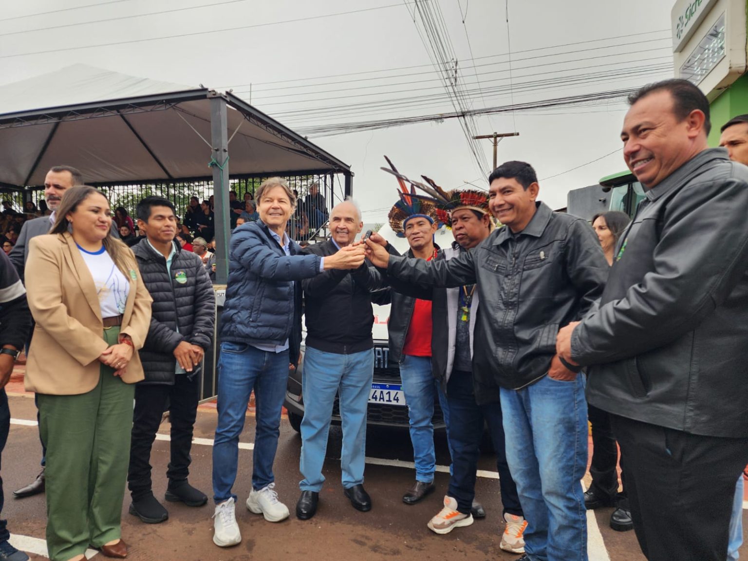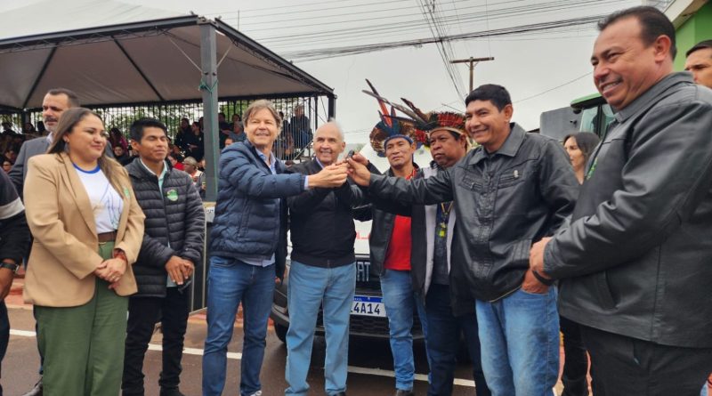 receberam a ambulância o Capitão da Aldeia, Onésio Dias, o vice-capitão Bento Hara e os vereadores indígenas Dorival Velásquez e Jaclison Lopes.