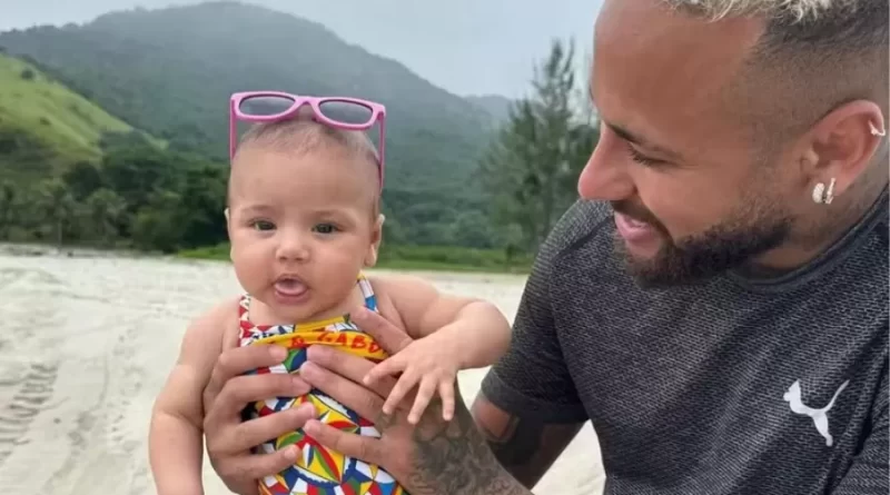 Neymar Jr. curte dia de praia com a filha, Mavie