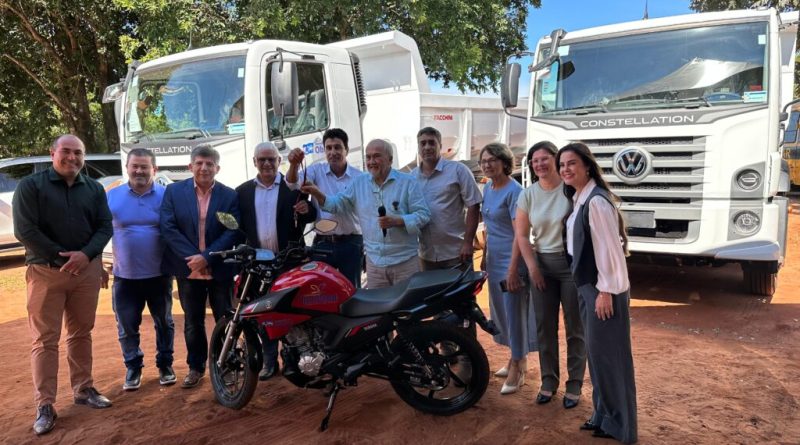 Prefeito de Iguatemi entrega dois caminhões e uma moto 0km para reforço da secretaria de Obras
