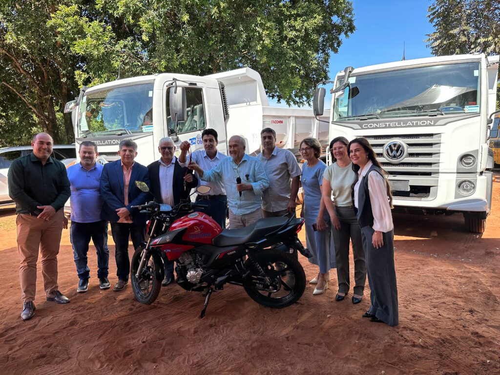 Na manhã desta sexta-feira (16), o prefeito de Iguatemi, Lídio Ledesma, realizou a entrega oficial de dois caminhões 0km a diesel, com carroceria basculante, marca Volkswagen Truck e uma moto 0km, da marca Yamarra, para o reforço da frota da secretaria de Obras.