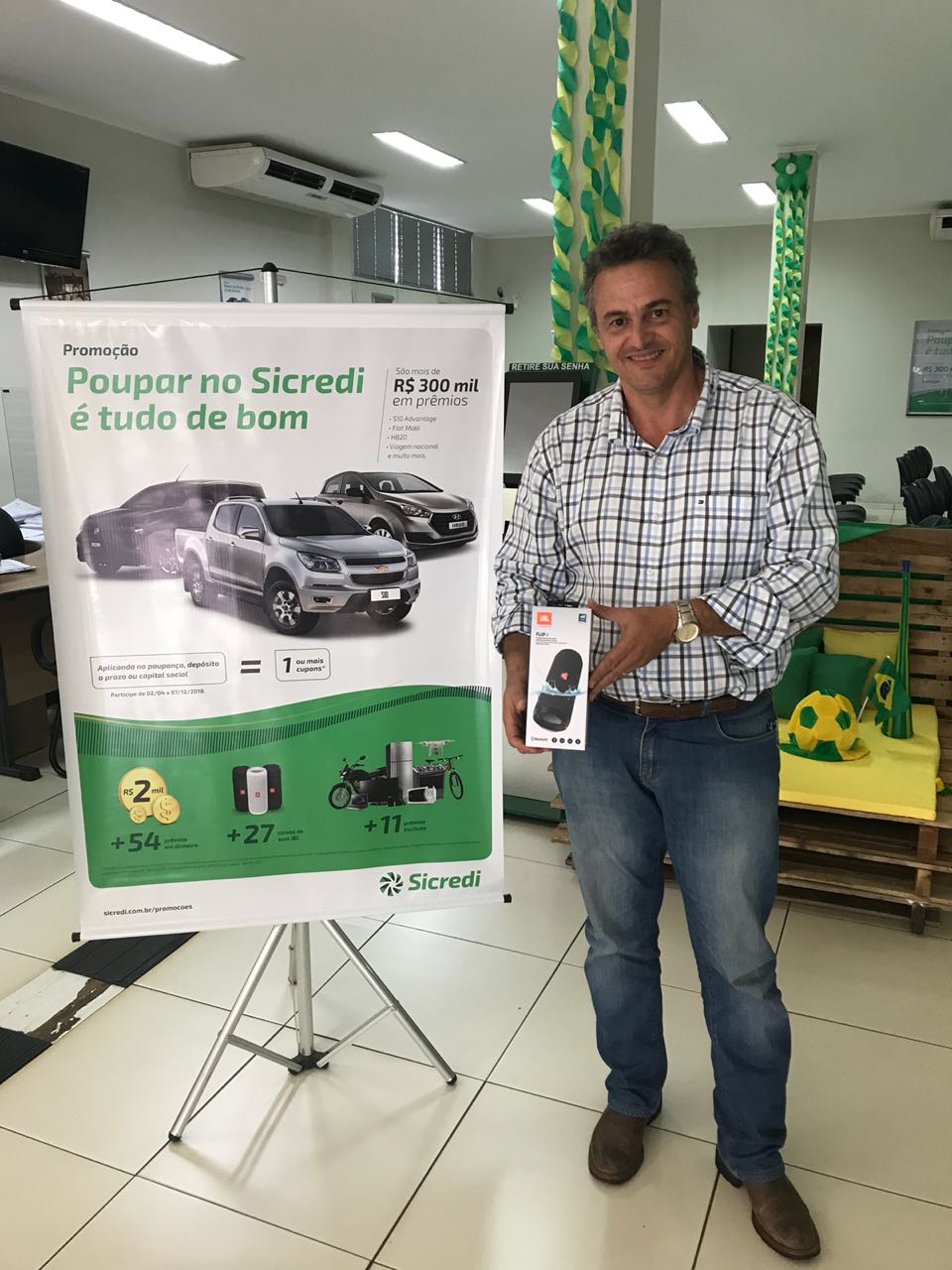 O primeiro sorteio da promoção “Poupar no Sicredi é Tudo de Bom” entregou uma caixa de som JBL, Flip 4, e um prêmio de R$ 2 mil, para dois associados da agência no município