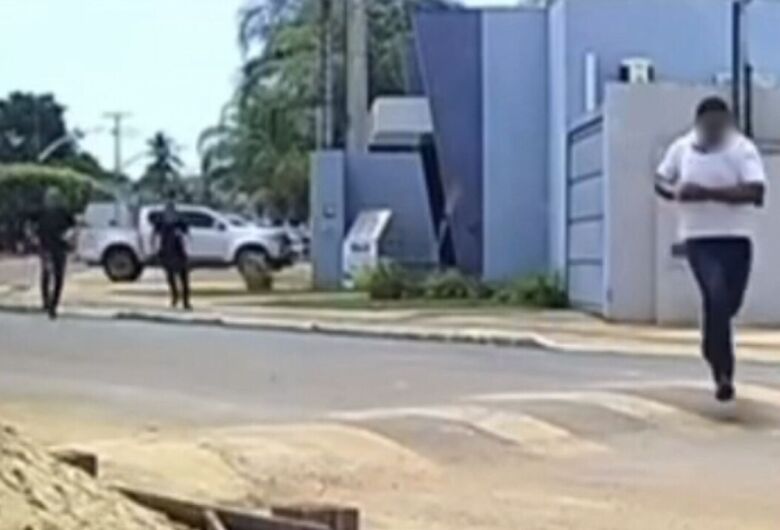 Vídeo de uma câmara de segurança, mostra toda a ação do suspeito, que corre da polícia algemado no momento em que é colocado no camburão. Ele sai em disparada, mas logo é alcançado pelos agentes.